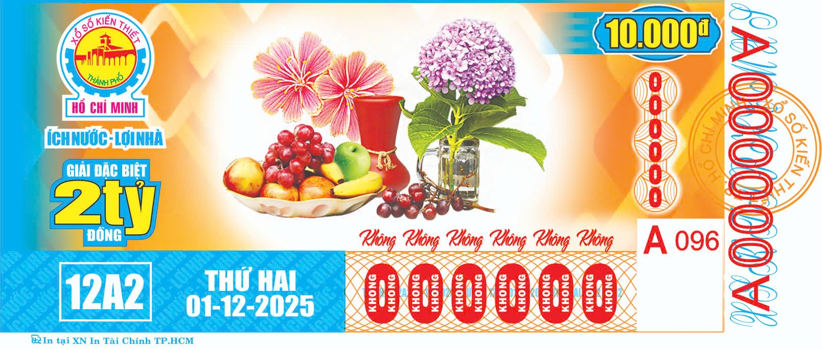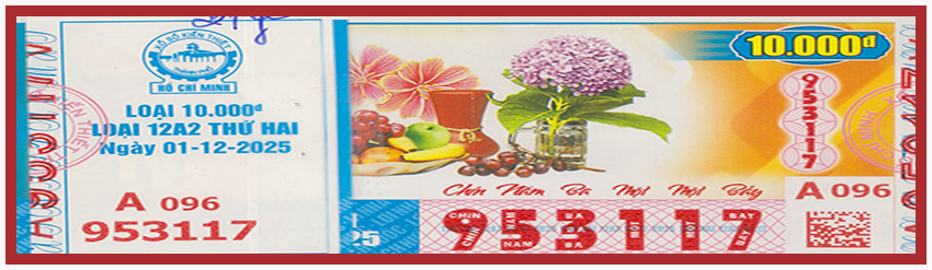 KẾT QUẢ XỔ SỐThứ Hai, ngày 01-12-2025Loại vé: 6 số, 10.000đ, Kí hiệu: 12A2 | |