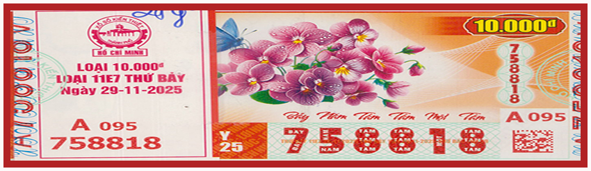 KẾT QUẢ XỔ SỐThứ Bảy, ngày 29-11-2025Loại vé: 6 số, 10.000đ, Kí hiệu: 11E7 | |