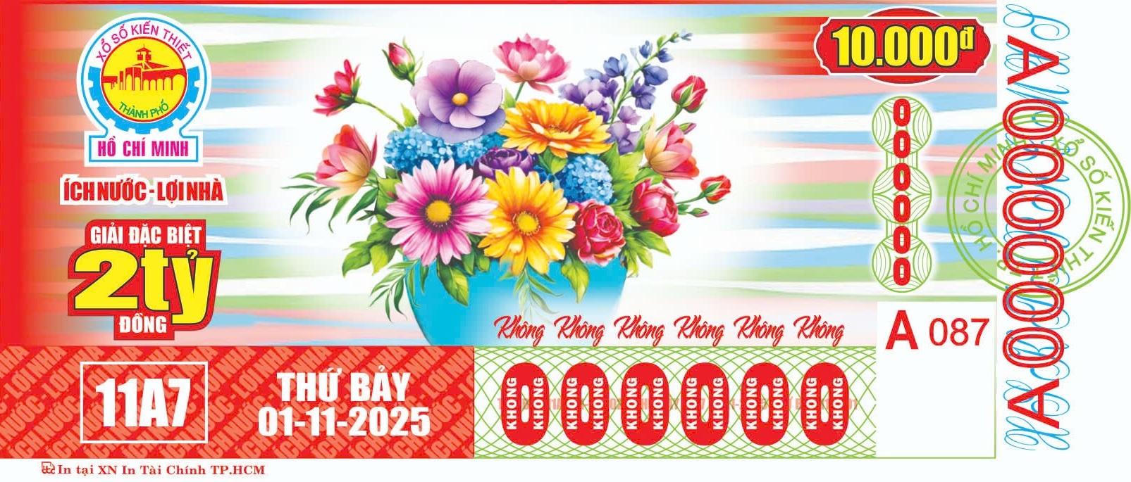 KẾT QUẢ XỔ SỐThứ Bảy, ngày 01-11-2025Loại vé: 6 số, 10.000đ, Kí hiệu: 11A7 | |