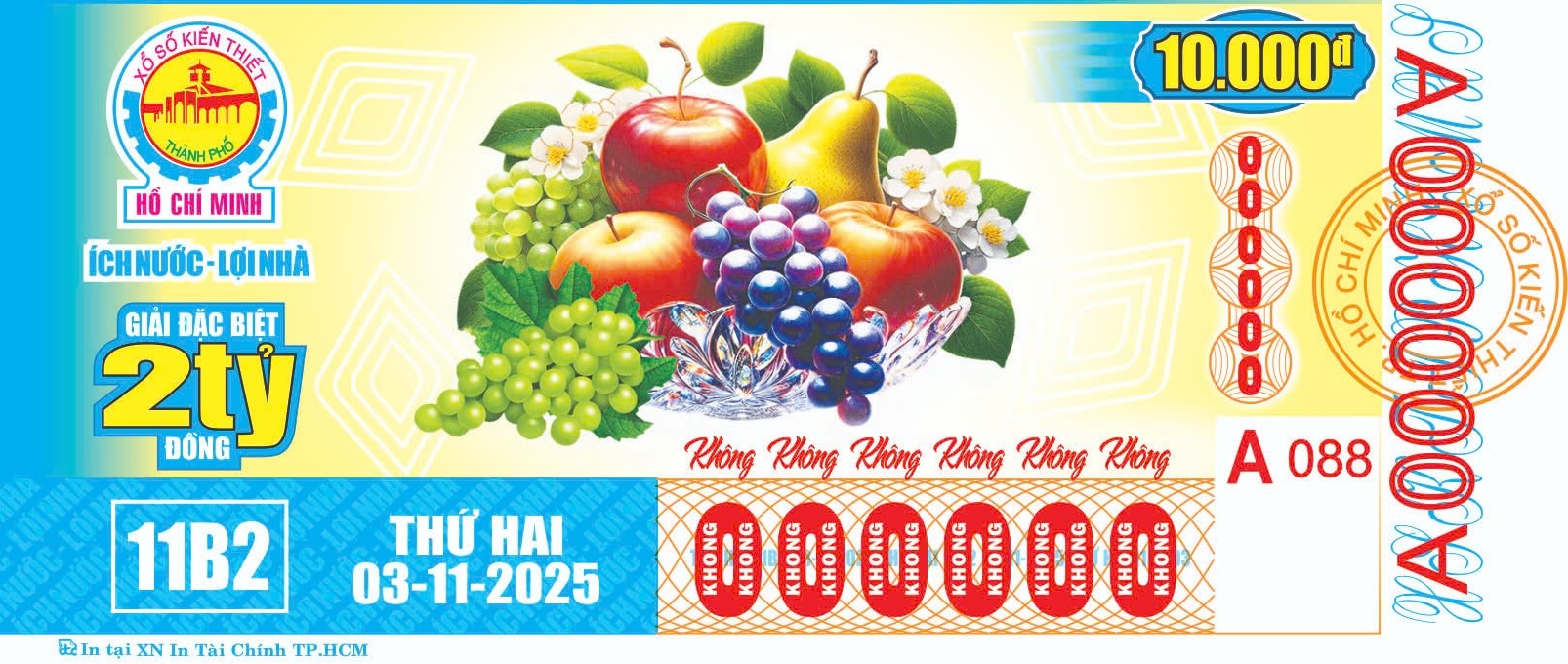 KẾT QUẢ XỔ SỐThứ Hai, ngày 03-11-2025Loại vé: 6 số, 10.000đ, Kí hiệu: 11B2 | |