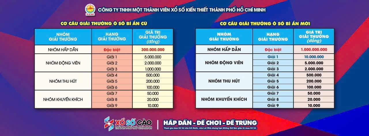 Bảng so sánh cơ cấu giải thưởng mới và cũ mẫu cào “ Ô số bí ẩn “.