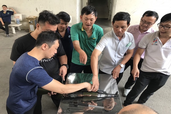 Lực lượng tự vệ Công ty thực hành tháo ráp súng trường K.63.